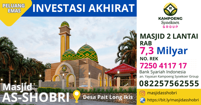 bersama-sama dengan niat dan ridhoa allah, Tentu kita Bisa menjaga warisan peradaban ini. Dukung Pembangunan masjid As-Shobri Yayasan kampoeng Syoekoer Group dan ikuti berbagai kegiatan yang kami tawarkan